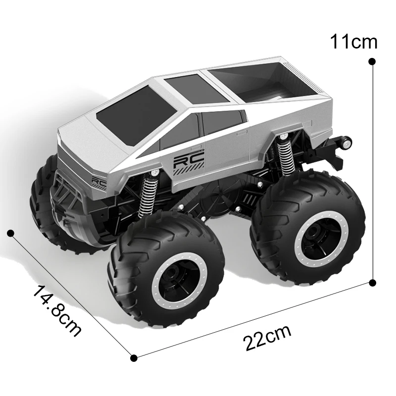 Votre enfant va adorer le look unique de ce cybertruck télécommandé pour enfant ! Inspiré du célèbre véhicule Tesla, ce modèle reproduit fidèlement les angles géométriques et l’esthétique futuriste qui ont fait le succès du Cybertruck original. 🚗✨